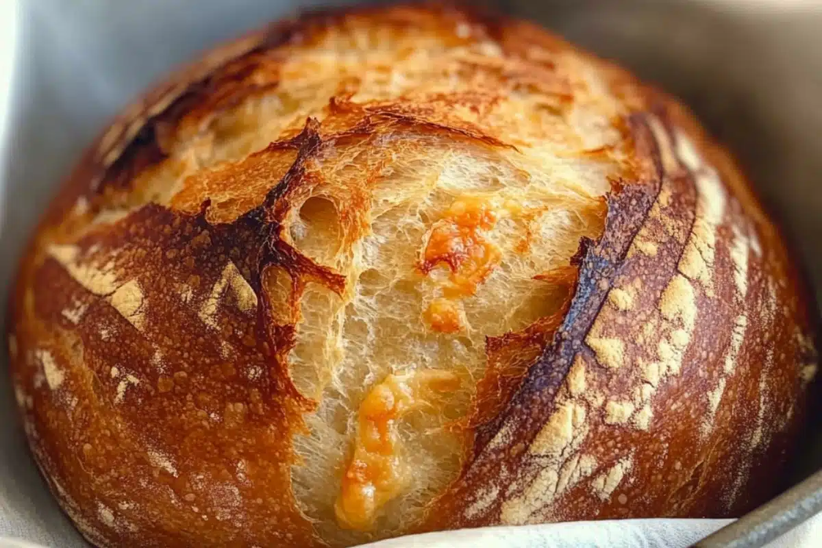Transfer your dough to a preheated Dutch oven and bake until golden brown. The steam in the pot will create a crispy crust that complements the soft cheese interior.